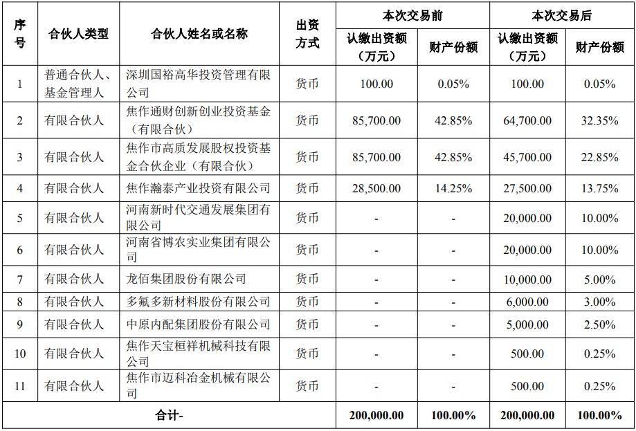 河南空天产业基金结伴东谈主、认缴出资额情况记者留神到,龙佰集团股份有限公司、多氟多新材料股份有限公司一样参与认缴出资,出资额区分为1亿元、6000万元。